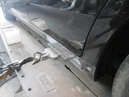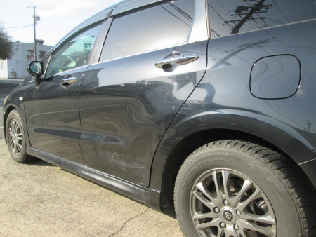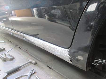 左リアドア・サイドステップが大きくキズ付きへこんでいます。