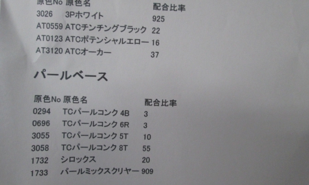車にはカラー番号が付いていますので、カラー番号を調べ複数の原色を混ぜ合わせて色を作ります