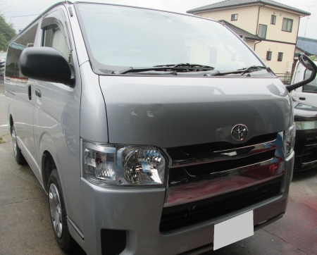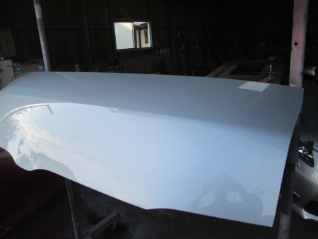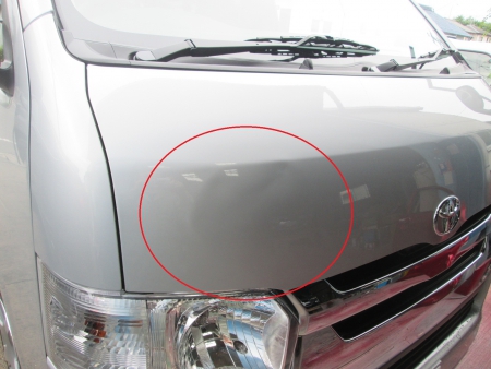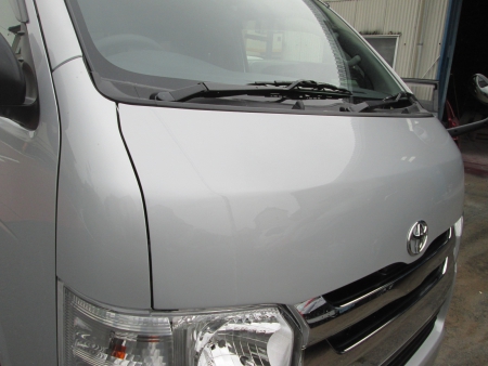関市よりハイエースのボンネットのへこみ鈑金塗装