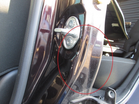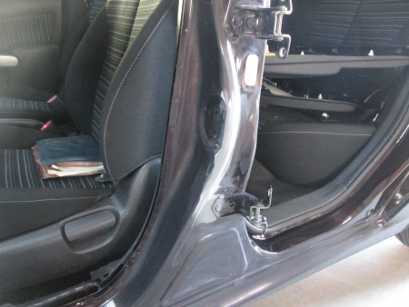 ドアを開けてみるとセンターピラーにもへこみがあります