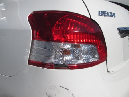 リアバンパーにキズへこみ、左リアフェンダーにキズ、テールランプに割れがあります